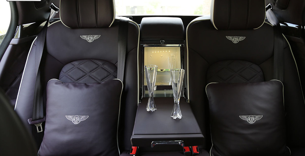 The Mulsanne has been designed as a driver’s car, but it’s really a car to be driven in by a man with a smart suit and a hat. The second row of seats that is usually quite forgotten in normal cars, has received a lot of plush attention. Two armchairs at the back are separated by the centre console hiding reclining and massage buttons, complete with a cushions made from the same leather hide and a massive upholstered footrests to provide the ultimate comfort for those travelling at the back. The model we had on test has been equipped with an optional drink cooler hidden behind the sliding glass door. And of course, designers did not have cans of soft drinks in their mind. It has been created especially for two champagne bottles, which sit on particular angle to avoid spillage and crystal glasses made exclusively for this vehicle proudly wearing the B logo adding sparkles to the bubbly.